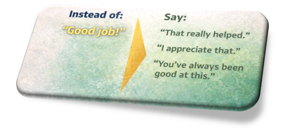 “Yay, you did it!” vs. “You got that done. Nice work.”
